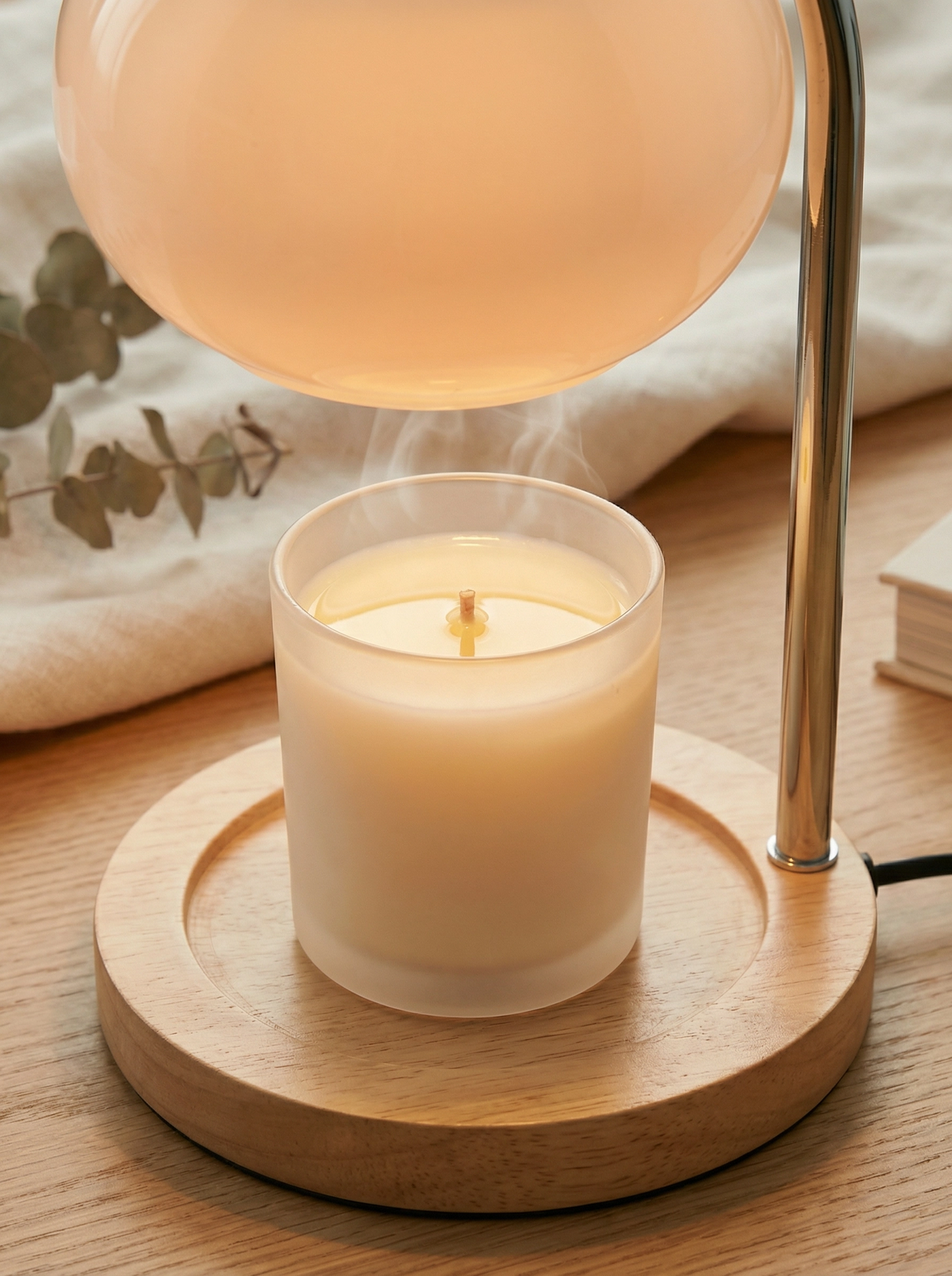 Place your candle jar underneath the lamp. The 50W bulb gently heats the top layer of wax, melting it slowly and releasing the fragrance, no flame needed. You get full scent throw without smoke, soot, or fire risk.
